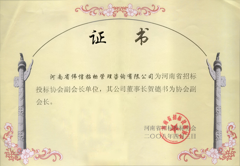 河南省建設(shè)工程招標投標協(xié)會副會長