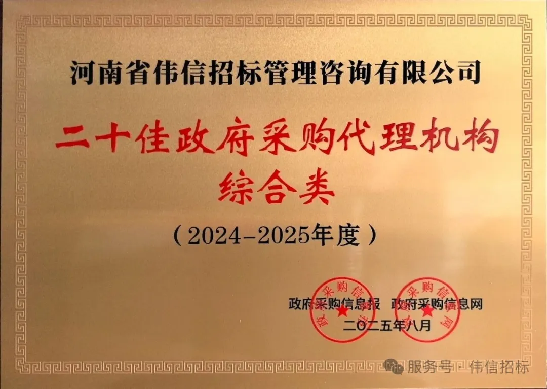 偉信招標(biāo) 榮獲“二十佳政府采購(gòu)代理機(jī)構(gòu)?綜合類(lèi)” 獎(jiǎng)項(xiàng),彰顯行業(yè)綜合服務(wù)硬實(shí)力