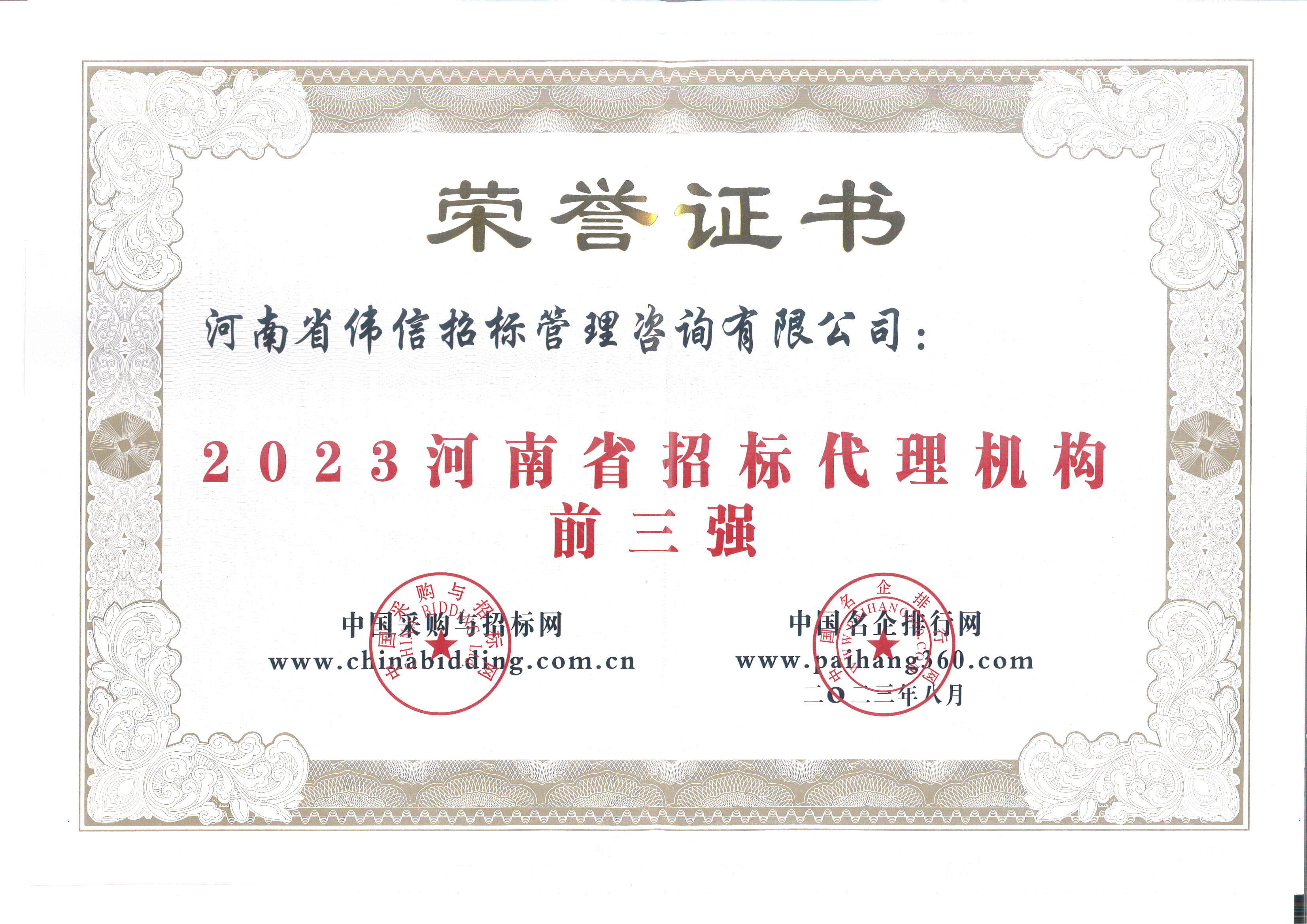 公司喜獲2023河南省招標(biāo)代理機(jī)構(gòu)前三強(qiáng)